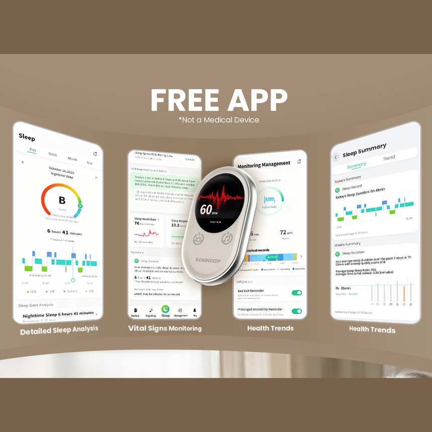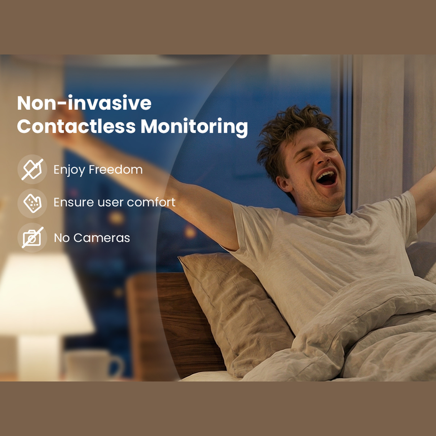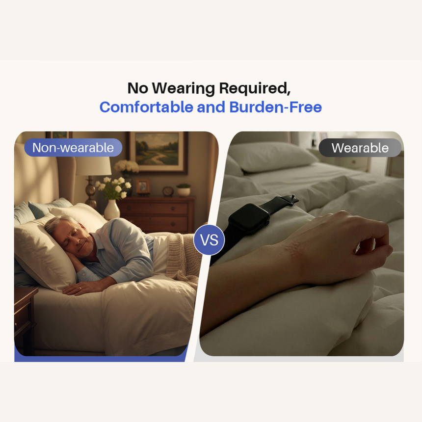 Unlike rings or smartwatches, SOMNDEEP requires no device on the body, avoiding discomfort and sleep disruption.