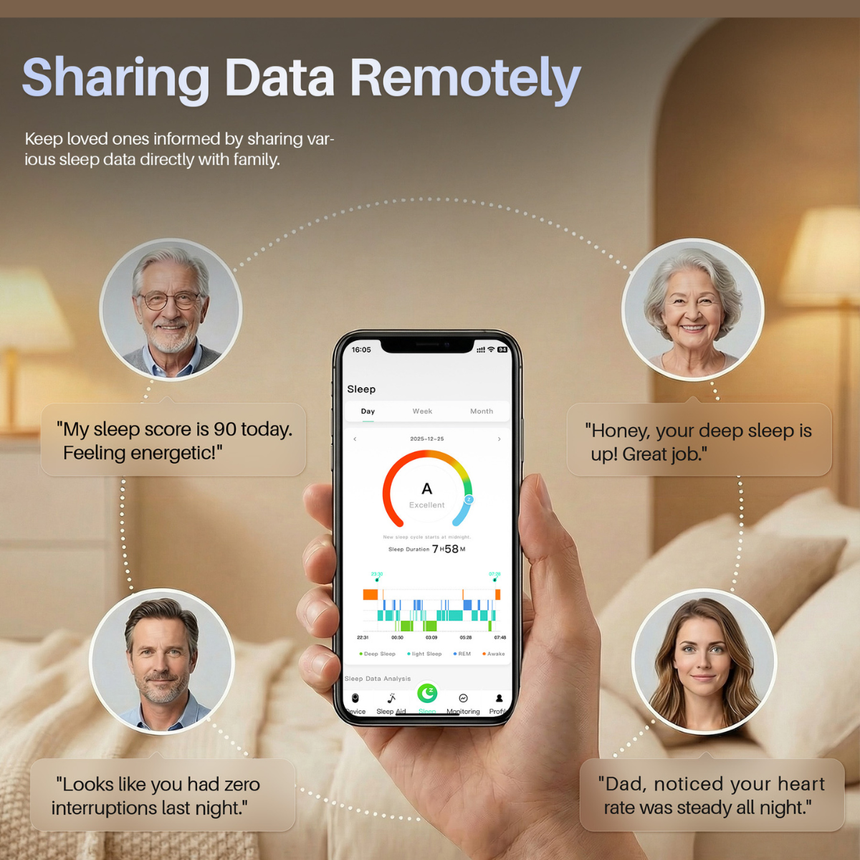 A personal view into your nighttime data, with the option to share key insights with family — staying connected through understanding, not interruption.When you seek deeper insight or professional guidance, you’re supported by clearer, more meaningful information.