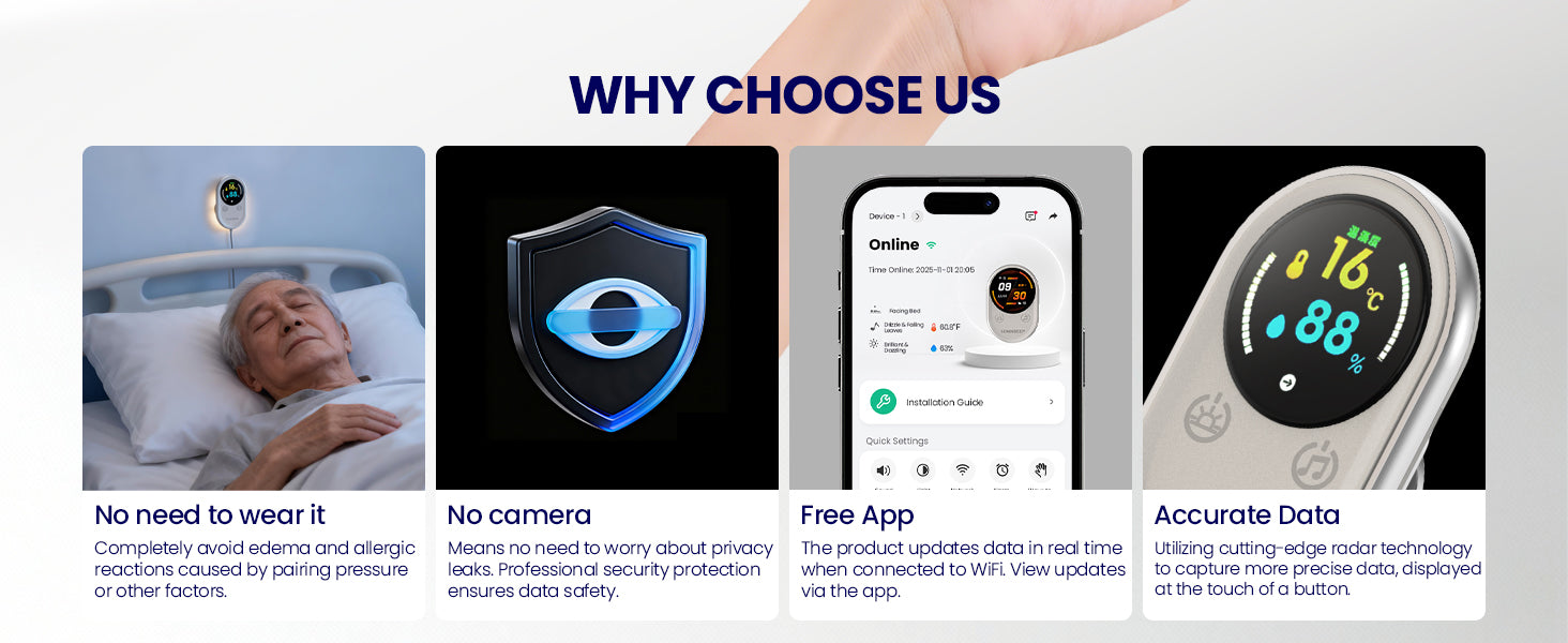 No.The device uses millimeter-wave radarand must be installed at a fixed angle anddistance.Please follow the installation guideand mount it on the bedside, not on the bed.