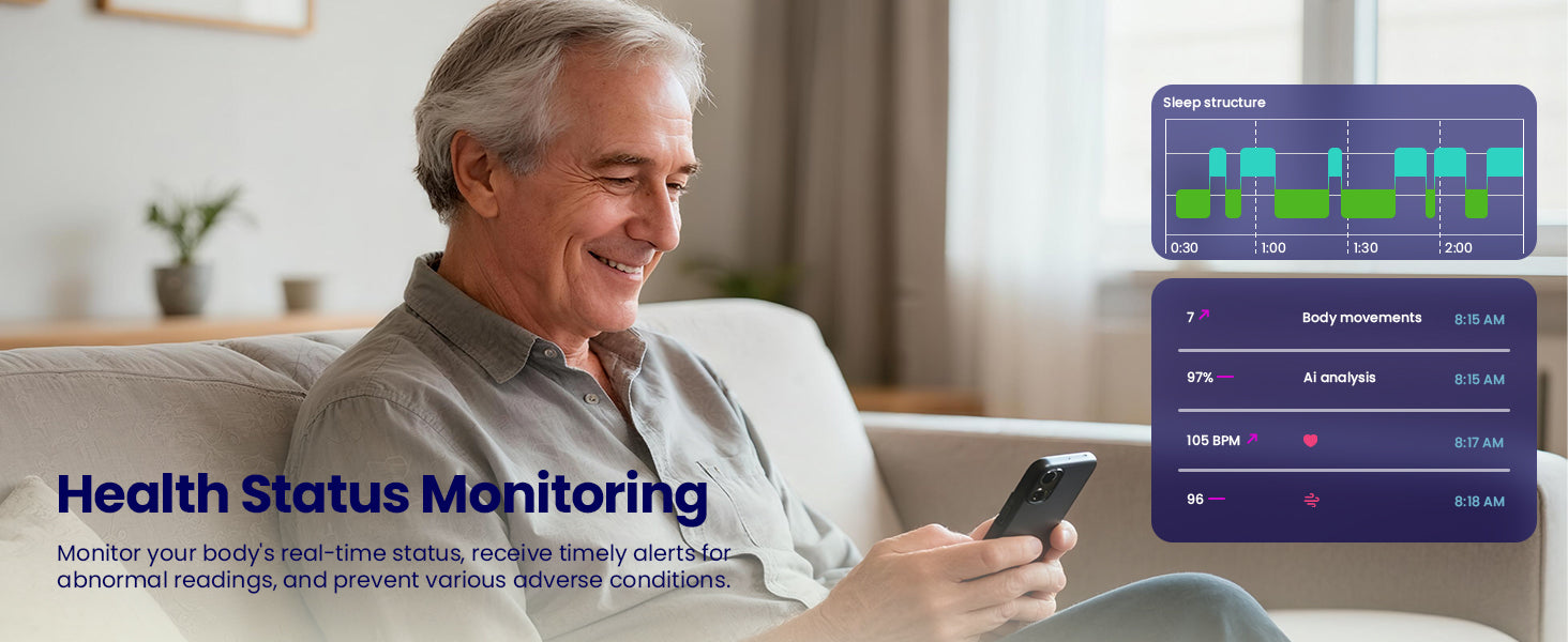 Positioning: Make sure the device faces your chest/abdomen, mounted 12-16 in(30-40 cm)above the bed, with no objects blocking it.